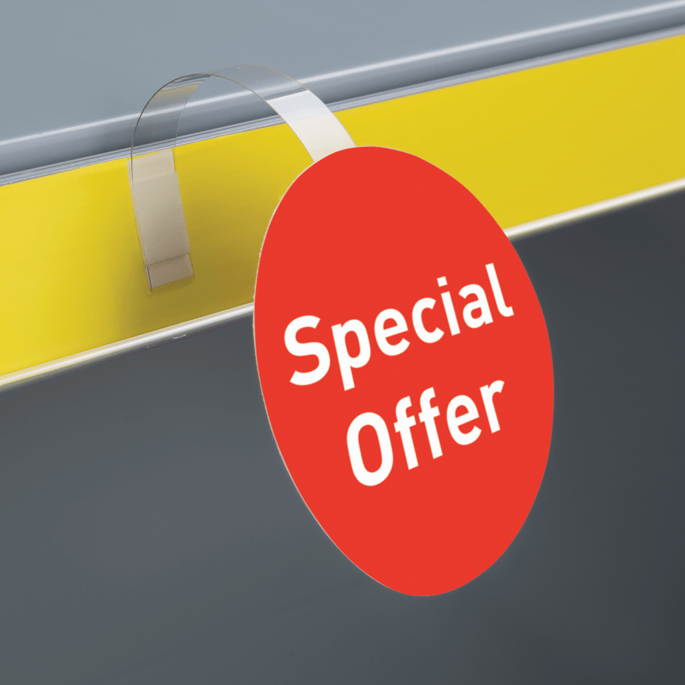 Affordable yet effective shelf wobblers are a great method of visual marketing. Hang them from your shelf edges and watch them wobble, catching the eye of shoppers and drawing them straight to your product. Just Peel and stick in store to drive promoti